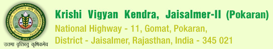 The Krishi Vigyan Kendra (Farm Science Centre) sanctioned on 31st March, 2012 is one of the grass root level technology transfer institute at Pokaran, and is established by the Indian Council of Agricultural Research, New Delhi in collaboration with Swami Keshwanand Rajasthan Agricultural University, Bikaner to accomplish the work of transfer of technology in the fields of agriculture and allied for the farming community and improving their livelihoods. The organization acts as a bridge between the research organization and farmers that works for solving the location specific problems of farming community in agriculture and allied fields in the domain area i.e. Pokaran and Fatehgadh tehsils of Jaisalmer district in Rajasthan.